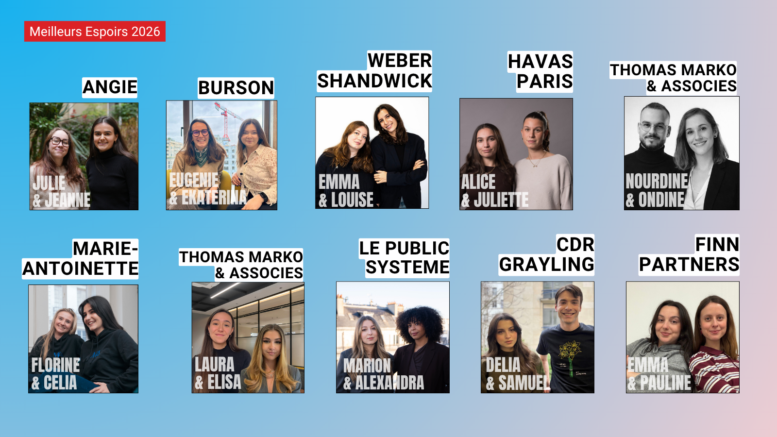 Eugénie Trouvé-Apperry et Ekaterina Govorukhina (Burson Paris) gagnent la finale des Meilleurs Espoirs RP organisée le 2 avril 2026 au CELSA et représenteront la France aux compétitions internationales :